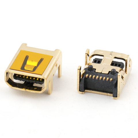 Conector fêmea tipo mini usb tipo b banhado a ouro, 90 graus, tipo dip, 8 pinos